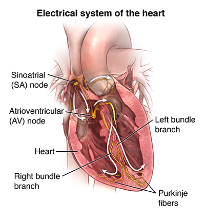 - Cardioversion. In this procedure, the healthcare provider sends an electrical shock to your heart through the chest. This will stop certain very fast arrhythmias such as atrial fibrillation, supraventricular tachycardia, or atrial flutter. You are connected to an ECG monitor, which is also connected to the defibrillator. The electrical shock is delivered at the point during the ECG cycle to change the rhythm to a normal one.