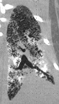 Chest computed tomography (CT) of patient with PAM showing symmetrical lower lobe predominant micronodular calcifications along bronchovascular bundles and interlobular septa.